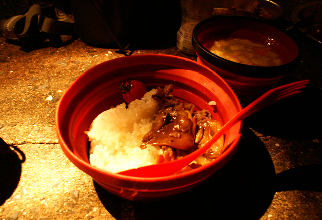 駅の近くで買った四万十牛の焼き肉が夕食。初日は移動でクタクタです。