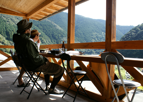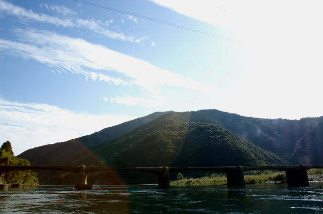 奇蹟のロケーション。橋と四万十川が一望できるデッキ。