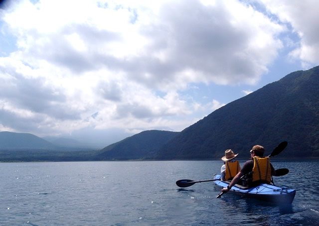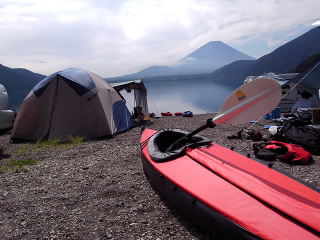 富士山のふもと本栖湖に、カヤック担いでやってまいりました。
