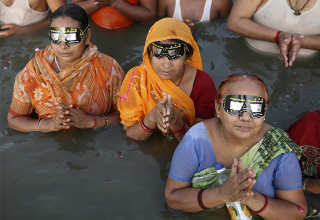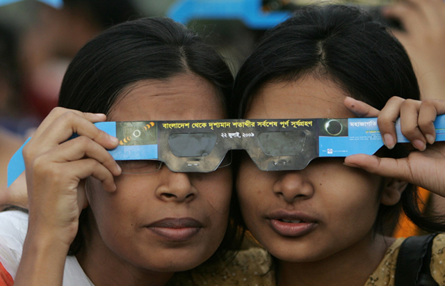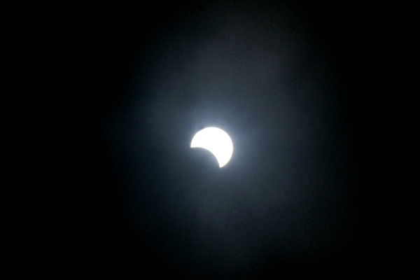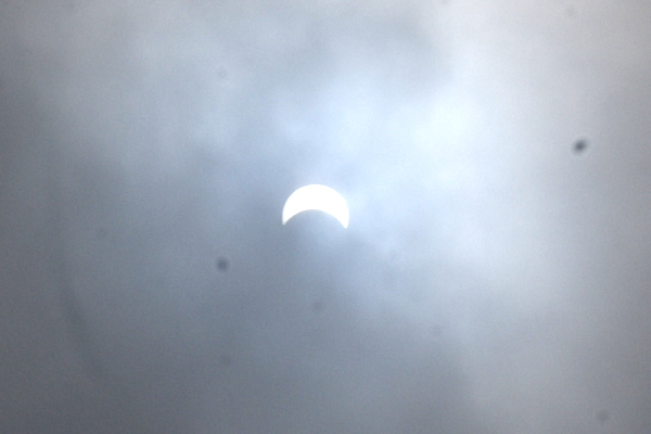 くもり空の東京でも、一点の光がさすように、雲の合間を縫って欠け始めた太陽が見えた。