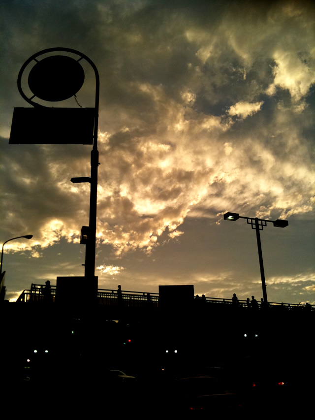 そして少し歩くと、歩道橋の上の人々が携帯で空を写している。