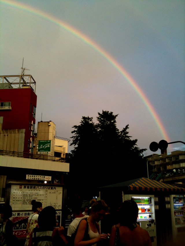 そこには見たことないくらいきれいな半円を描く大きな虹が現れていた。
