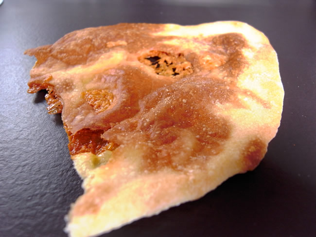 チーズとパンの生地をペッタンコにして焼いたパン。パリパリ。