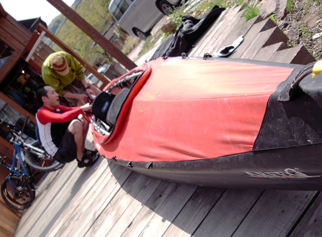 モンベル長瀞店前にて組立。