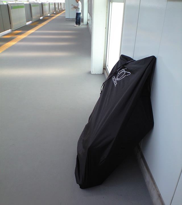 自転車を分解して輪行バックにいれる。これが一番疲れた。